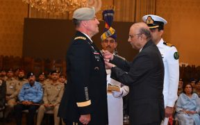 اسلام آباد (سہ پہر)(آئی پی ایس )یونائیٹڈ اسٹیٹس سینٹرل کمانڈ (سینٹ کام) کے کمانڈر جنرل مائیکل ایرک کوریلا کو نشانِ امتیاز ملٹری اعزاز سے نواز دیا گیا۔پاک فوج کے شعبہ تعلقات عامہ (آئی ایس پی آر) کے مطابق صدر آصف زرداری نے ایوانِ صدر میں باوقار تقریب میں جنرل کوریلا کو اعزاز عطا کیا۔آئی ایس […]