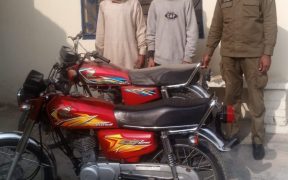 راولپنڈی ( )ایس ایچ او رتہ امرال چوہدری ریاض کی ہمراہ پولیس ٹیم کاروائی، رابری اورموٹرسائیکل چوری کی وارداتوں میں ملوث02ملزمان گرفتار، چھینا گیاموٹرسائیکل اور چوری شدہ موٹرسائیکل برآمد۔تفصیلات کے مطابق رتہ امرال پولیس نے کاروائی کرتے ہوئے رابری اورموٹرسائیکل چوری کی وارداتوں میں ملوث 02ملزمان محمد سجاد اورلطیف کو گرفتارکرلیا، ملزمان سے چھینا گیا […]