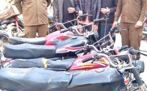 راولپنڈی( )ایس ایچ او تھانہ صادق آباد انوار الحق کی ہمراہ پولیس ٹیم کاروائی،تین رکنی بائیک لفٹر گینگ گرفتار،چوری شدہ 04موٹرسائیکل برآمد۔تفصیلات کے مطابق صادق آباد پولیس نے کاروائی کرتے ہوئے تین رکنی بائیک لفٹر گینگ کو گرفتارکرلیا، گرفتار ملزمان کی شناخت شہریار، انیس اور مبین کے نام سے ہوئی،ملزمان سے چوری شدہ 04موٹرسائیکل برآمد […]