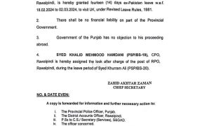 راولپنڈی آر پی او راولپنڈی سید خرم علی کے بیرون ملک 14 دن کی رخصت پر جانے کا معاملہ آر پی او راولپنڈی سید خرم علی نے قبل از انتخابات 17 جنوری 2024ء کو 14 روز کی بیرون ملک رخصت کی درخواست دی تھی۔ وزیر اعلی پنجاب آفس کو اس حوالے سے باقاعدہ سمری 30 […]