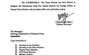 Important annocuncement: Foreign Minister @MIshaqDar50 has been appointed as Deputy Prime Minister of Pakistan