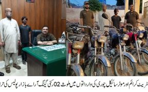 راولپنڈی (سہ پہر) ایس ایچ او تھانہ آر اے بازار جاوید سلہریا کی زیرنگرانی پولیس ٹیم کی کاروائی، سٹریٹ کرائم اور موٹر سائیکل چوری کی وارداتوں میں ملوث 02 رکنی گینگ گرفتار، 6 مسروقہ موٹر سائیکل اور مسروقہ رقم 17 ہزار روپے برآمد۔ تفصیلات کے مطابق آر اے بازار پولیس نے کاروائی کرتے ہوئے سٹریٹ […]