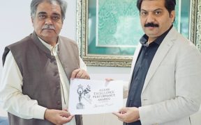 اسلام آباد (سہ پہر) پیرسیدسہیل بخاری چئیرمین ایوارڈزکمیٹی چوہدری عبدالروف چئیرمین فئیرگروپ کو ایشین ایکسی لینس پرفارمنس ایوارڈز اسلام آباد کی تقریب کے سلسلے میں سپانسرز شپ کی پروپوزل پیش کر رہے ہیں – ایشین ایکسی لینس پرفارمنس ایوارڈز کی تقریب 7 ، سال بعد اسلام آباد میں منعقد کی جارہی ہے –