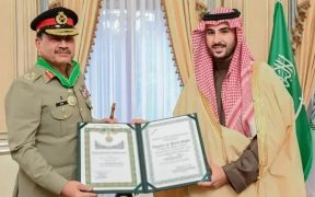 اسلام آباد (سہ پہر) سعودی عرب کے وزیرِ دفاع شہزادہ خالد بن سلمان بن عبدالعزیز نے چیف آف ڈیفنس فورسز اور چیف آف آرمی اسٹاف فیلڈ مارشل عاصم منیر کو پاک سعودی تعلقات کو فروغ دینے کی کوششوں پر سعودی عرب کا اعلیٰ اعزاز کنگ عبدالعیزیز میڈل آف ایکسیلنٹ کلاس سے نوازا ہے۔ رپورٹ کے […]