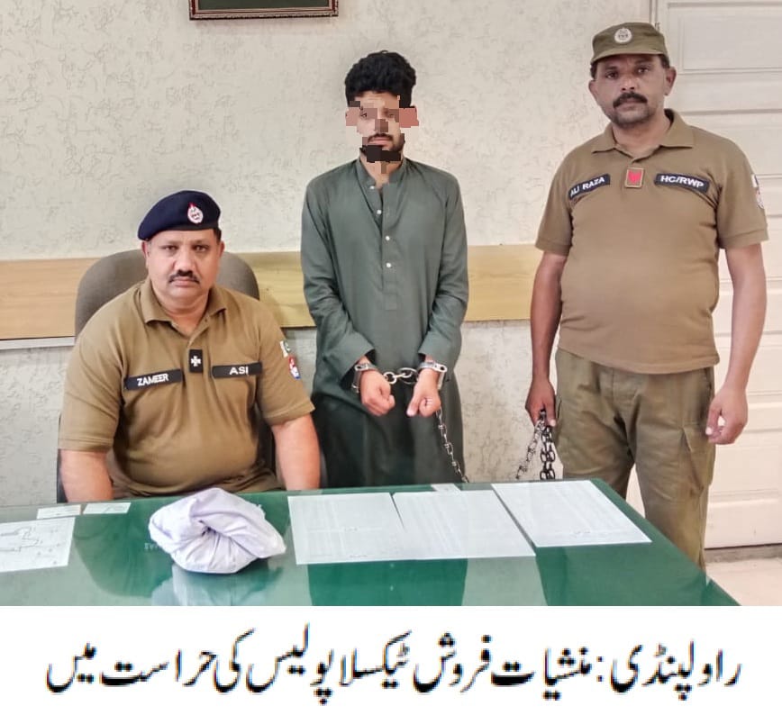 ، چرس،شراب اوراسلحہ وایمونیشن برآمد،مقدمات درج۔تفصیلات کے مطابق صادق آباد پولیس نے ملزم عقیل سے 350گرام چرس، ٹیکسلا پولیس نے ملزم طاہر بلا ل سے 01کلو 220گرام چرس،پیرودھائی پولیس نے ملزم فقیر حسین سے 05لیٹرشراب،ملزم جنید سے 01پستول 30بور معہ ایمونیشن،کہوٹہ پولیس نے ملزم امتیاز سے 10لیٹرشراب،ملزم نوید سے 10لیٹرشراب، کلرسیداں پولیس نے ملزم یاسر سے 01چھری اورملزم محمداسماعیل 01چھری برآمد کرکے ملزمان کے خلاف الگ الگ مقدمات درج کرلیے گئے، ڈویژنل ایس پیز کا کہناتھاکہ جرائم پیشہ عناصر کے خلاف کاروائیوں میں مزید تیزی لائی جارہی ہے۔