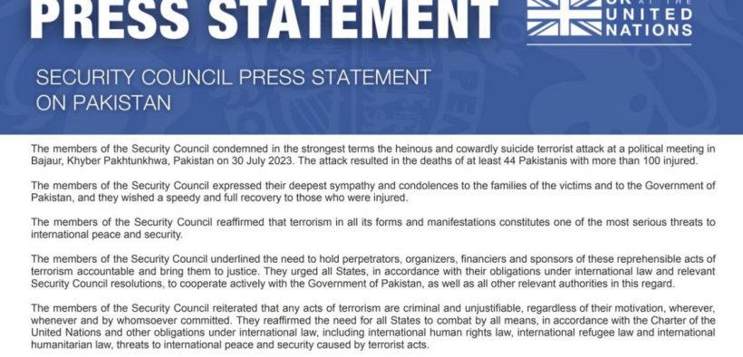 The Security Council urges all relevant countries to take decisive action against the perpetrators of the Bajaur incident. All the actors, financial supporters and facilitators involved in the incident should be brought to justice as soon as possible, the statement said.