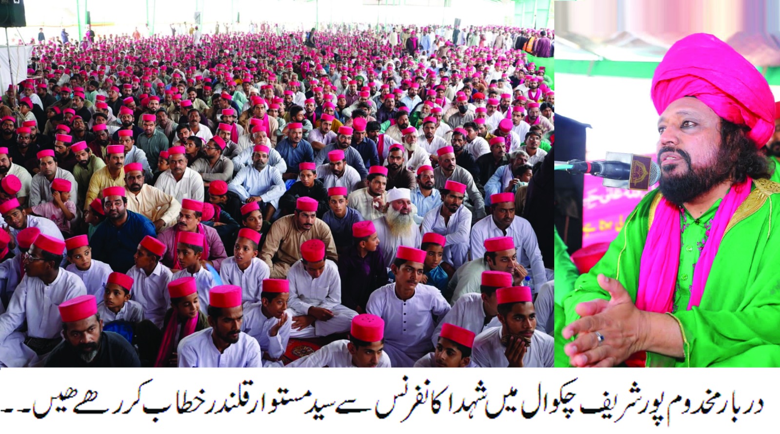 دربار مخدوم پور شریف چکوال میں مخدوم محمود مستوار قلندر کی زیر سرپرستی سیدنا امام حسین علیہ اللہ سلام کے تہھترواں سالانہ عرس مبارک کی دو روزہ تقریبات اختتام پزیر ہوئیں جس میں ملک بھر اور بیرون ممالک سے مرد و خواتین کی کثیر تعداد نے شرکت کی