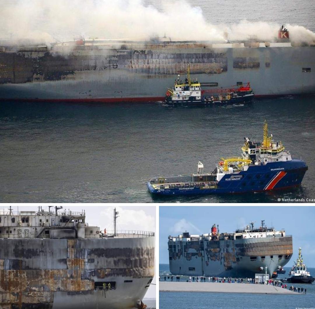 بین الاقوامی خبریں تازہ ترین نیدرلینڈز (سہ پہر) آتشزدگی کا شکار جہاز بندر گاہ پر پہنچا دیا گیا admin 2023-08-04 مال بردار بحری جہاز میں بھڑک اٹھنے والی آگ سے تقریباﹰ چار ہزار گاڑیاں جل کر خاکستر ہو گئی تھیں۔ ای گاڑیوں میں موجود لیتھئیم آئن بیٹریوں کی وجہ سے اس جہاز پر کئی دن تک آگ جلتی رہی تھی۔