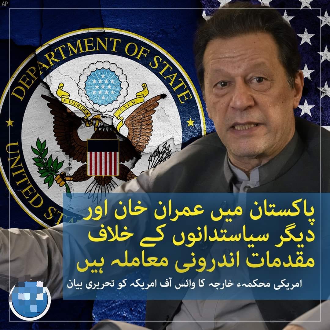 پاکستان تازہ ترین اسلام آباد(سہ پہر) سابق وزیراعظم عمران خان کی گرفتاری کے بعد امریکی محکمہ خارجہ کا ردعمل۔ admin 2023-08-06 سابق وزیراعظم عمران خان کی گرفتاری کے بعد امریکی محکمہ خارجہ کا ردعمل۔