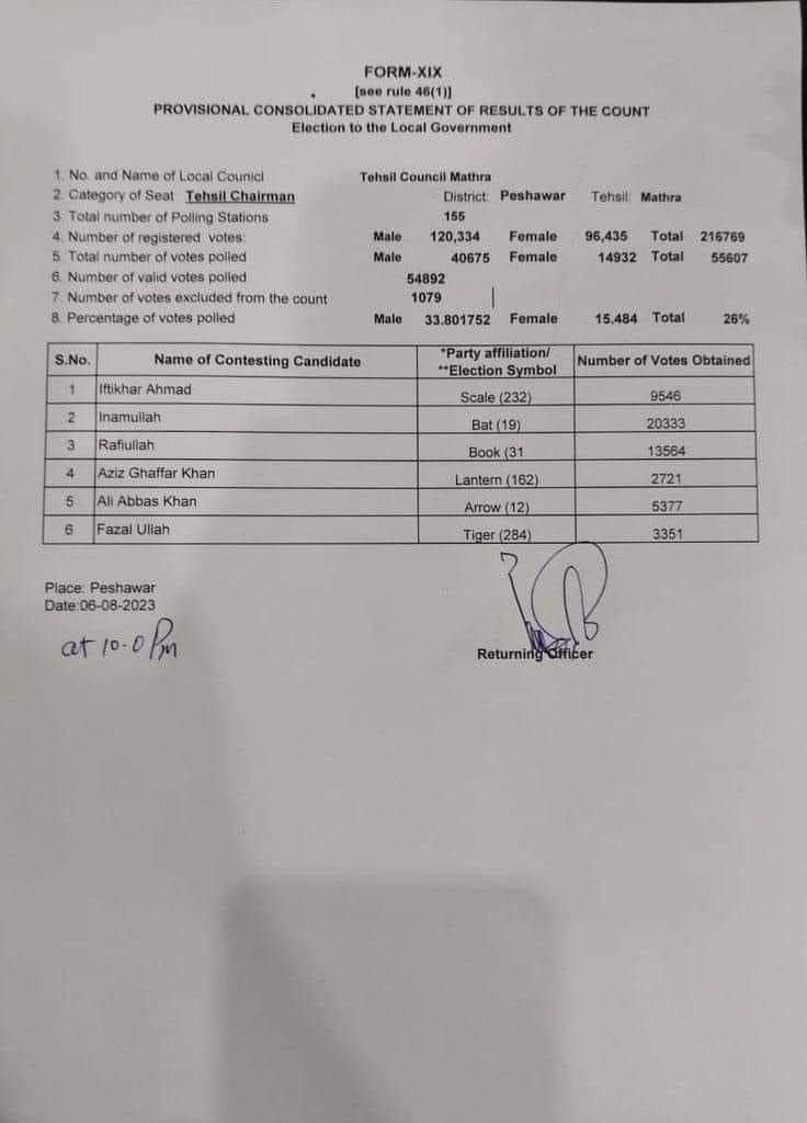انعام اللہ بھاری اکثریت سے سب کو شکست دے دیتا ہے