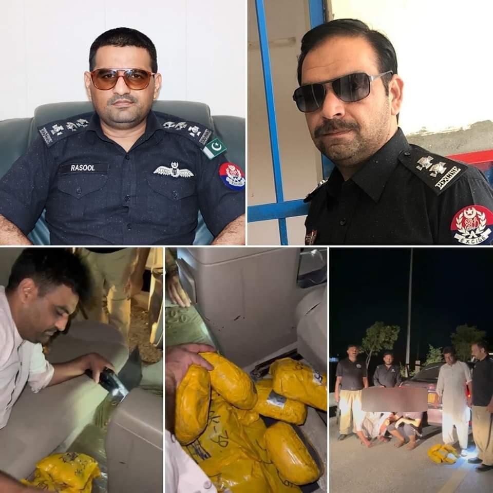 رسول رحمان ایس ایچ او تھانہ ایکسائز پشاور کی 24 گھنٹے کے اندر ایک اور بڑی کاروائی، بھاری مقدار میں منشیات سمگلنگ کی کوشش ناکام، موٹر کار سے 6000 گرام چرس اور 5000 گرام افیون برآمد، دو ملزمان گرفتار، مقدمہ درج،