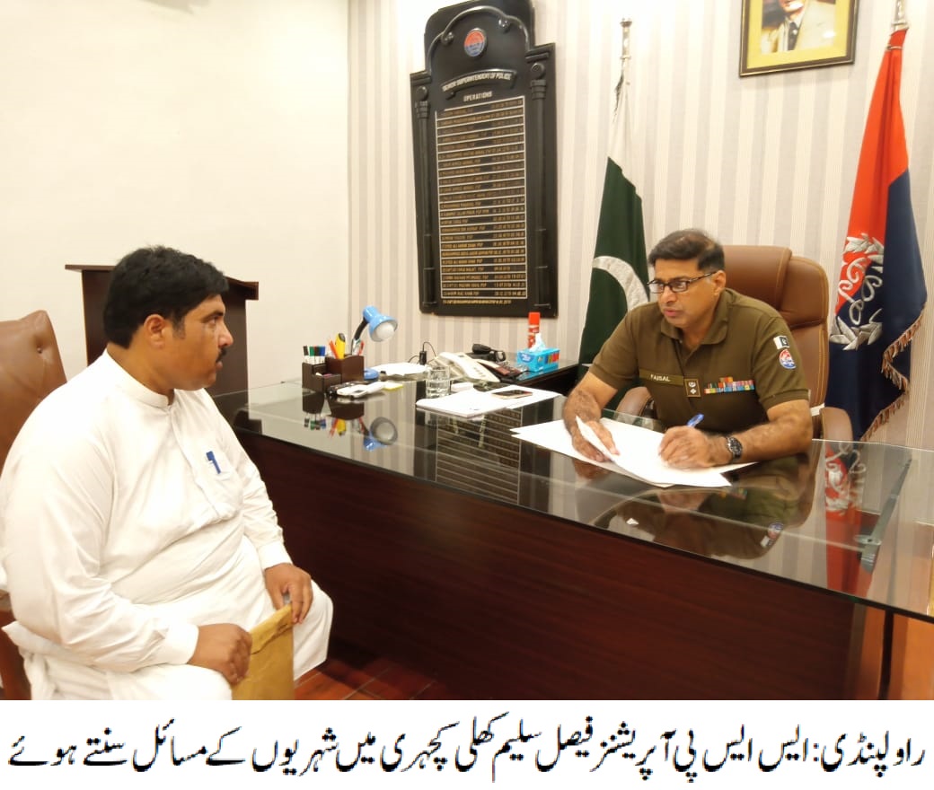 راولپنڈی(سہ پہر ) ایس ایس پی آپریشنز فیصل سلیم کی پولیس لائنز ہیڈکوارٹرز میں کھلی کچہری،شہریوں کے مسائل سن کر ان کے حل کے لیے متعلقہ افسران کو احکامات جاری کیے