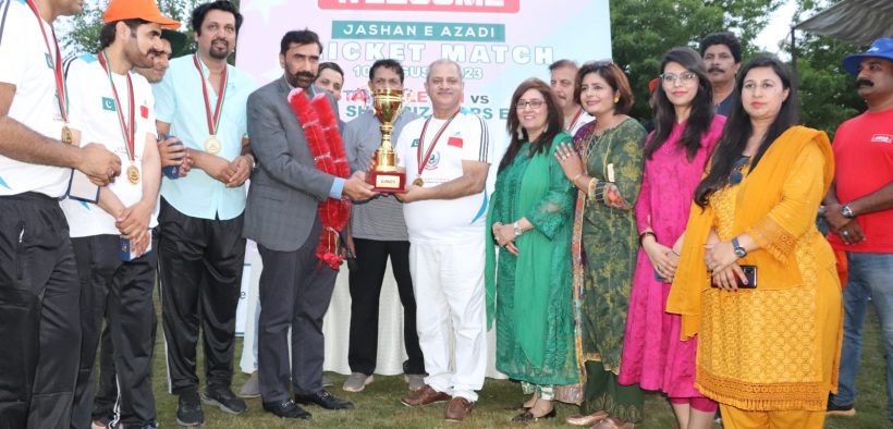 مہمان خصوصی سابق وفاقی وزیر فیصل کریم کنڈی اور چئیرمین اسٹینڈنگ قائمہ کمیٹی برائے داخلہ احمد حسین ڈاھر نے کھلاڑیوں میں انعامات تقسیم کیے اورمیچ کے شاندارانعقاد پر عاصمہ بٹ صدر آل پاکستان چائینیز اوورسیز یوتھ فیڈریشن کو مبارکباد پیش کی۔ اسلام آباد کے ذوالفقار علی بھٹو کرکٹ گراؤنڈ جی سیون مرکز میں شوبز الیون اور میڈیا الیون کےبارش کی وجہ سے متاثرہ میچ 8 اوورز پر مشتمل تھاجشن آزادی کرکٹ میچ کا ٹاس جیت کرپہلے کھیلتےہوئےشوبز الیون نے6 وکٹوں کے نقصان پر89 بنا کر 90 رنز کا ہدف دیا۔ شوبز الیون کی ٹیم میں بابر عباسی نے7 بالوں پر 22 سکور بنائے۔جواب میں