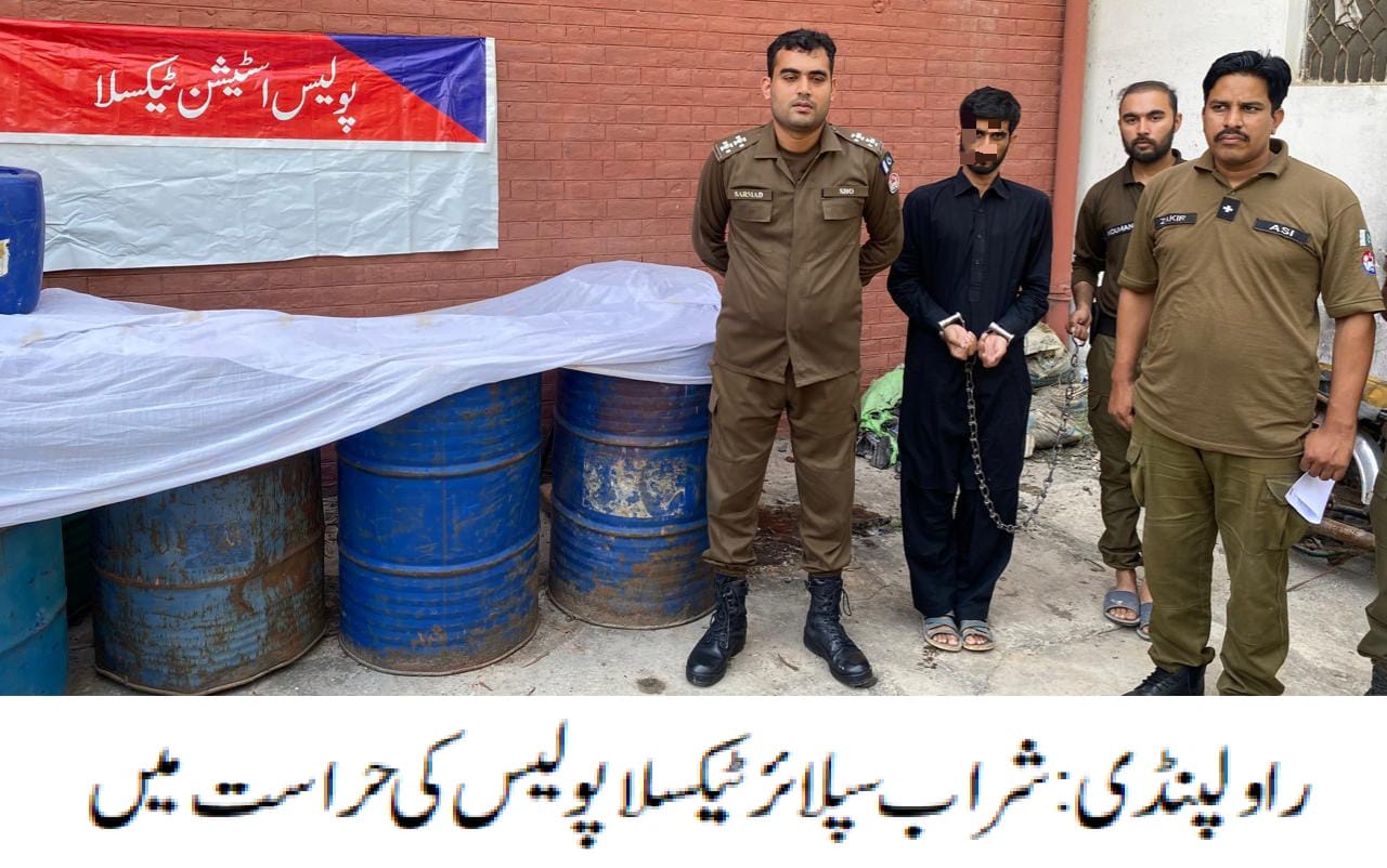 ، شراب سپلائر گرفتار، 2000لیٹرشراب برآمد،مقدمہ درج۔تفصیلات کے مطابق ٹیکسلا پولیس نے کاروائی کرتے ہوئے شراب سپلائر محمد علی کو گرفتارکرلیا، ملزم سے 2000لیٹرشراب برآمد کرکے مقدمہ درج کرلیاگیا، ایس پی پوٹھوہار محمد وقاص خان نے ٹیکسلا پولیس کو شاباش دیتے ہوئے کہاکہ نوجوان نسل کی رگوں میں منشیا ت کا زہر اتارنے والے ملزمان قانون کی گرفت سے نہیں بچ سکتے،منشیات اورشراب سپلائرز کے خلاف کریک ڈاؤن جاری رہے گا۔