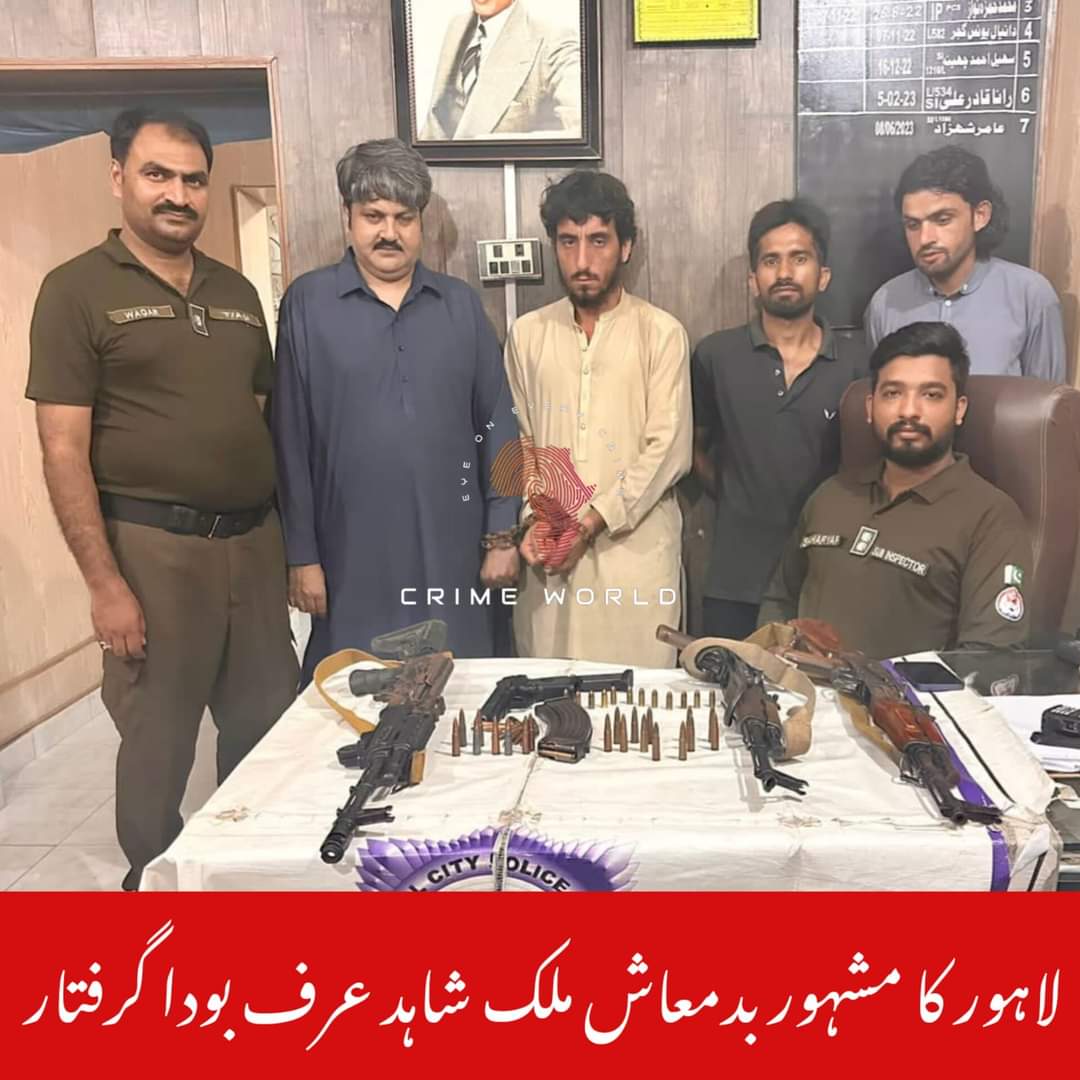 پاکستان تازہ ترین کرائم لاہور(سہ پہر)لاہور کے مشہور بدمعاش ملک شاہد عرف بودا کو پولیس نے ساتھیوں سمیت گرفتار کر لیا admin 2023-08-12 لاہور لاہور کے مشہور بدمعاش ملک شاہد عرف بودا کو پولیس نے ساتھیوں سمیت گرفتار کر لیا پولیس نے ملزمان شاہد بودا،علی حسن ،ارشد خان اور امین گل کو گرفتار کر کے ان کے قبضہ سے 3 کلاشنکوفیں اور پسٹل برآمد کرتے مقدمہ درج کر لیا