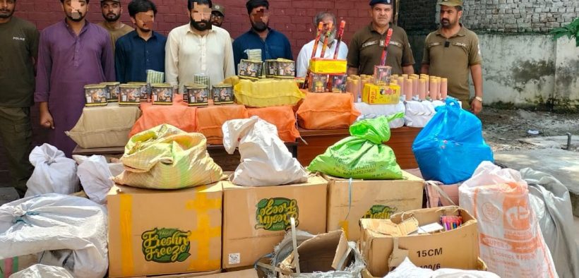 ، بھاری مقدار میں خطرناک آتش بازی کا لاکھوں روپے مالیتی سامان برآمد، گودام کے مالک سمیت 05 ملزمان گرفتار۔تفصیلات کے مطابق گنجمنڈی پولیس نے کاروائی کرتے ہوئے آتش بازی کے گودام پر چھاپہ مارکر گودام کے مالک سمیت 05ملزمان کو گرفتارکرکے بھاری مقدار میں خطرناک آتش بازی کا لاکھوں روپے مالیتی سامان برآمدکرلیا، گرفتار ملزمان میں گودام کا مالک ظفر اقبال عرف بالا، عاصم حسین،بلاول نواب،ماجدشہزاد اور ہارس اصغرشامل ہیں،آتش بازی کے سامان میں ہوائیاں 1000،ماچس پٹاخہ 1800ڈبی، انار 700،کبوتر انار 400،پھول چھڑی 105درجن،بکس پٹاخے20ڈبے،ہارٹ سٹک 20،چائنہ لاٹو 200اورپوپ پٹاخہ 200شامل ہیں، ایس پی راول فیصل سلیم کا کہناتھاکہ شہریوں کی جانوں کو خطرے میں ڈالنے والے ملزمان قانون کی گرفت سے نہیں بچ سکتے،سی پی او سید خالد محمود ہمدانی کی ہدایات کے مطابق جشن آزادی کے موقع پر قانون شکن عناصر کے خلاف کریک ڈاؤن جاری ہے۔