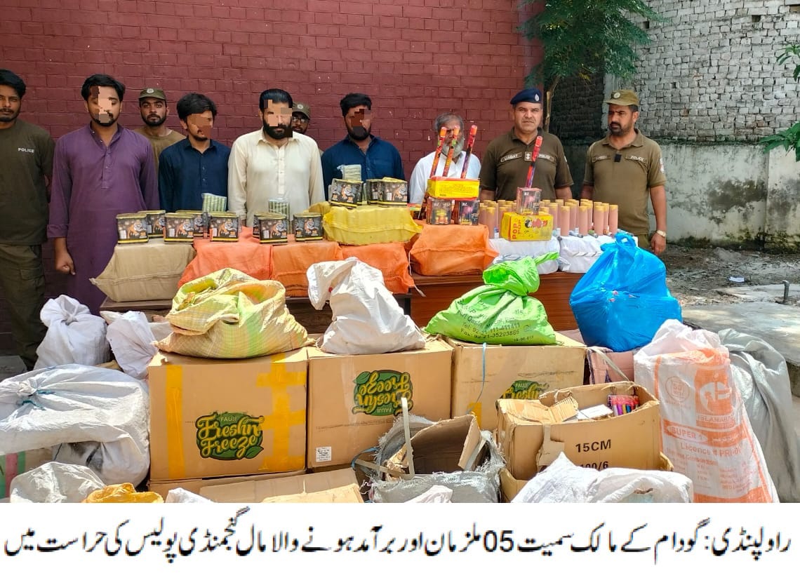 راولپنڈی(سہ پہر)گنجمنڈی پولیس کی بڑی کارروائی، آتش بازی کے گودام پر چھاپہ