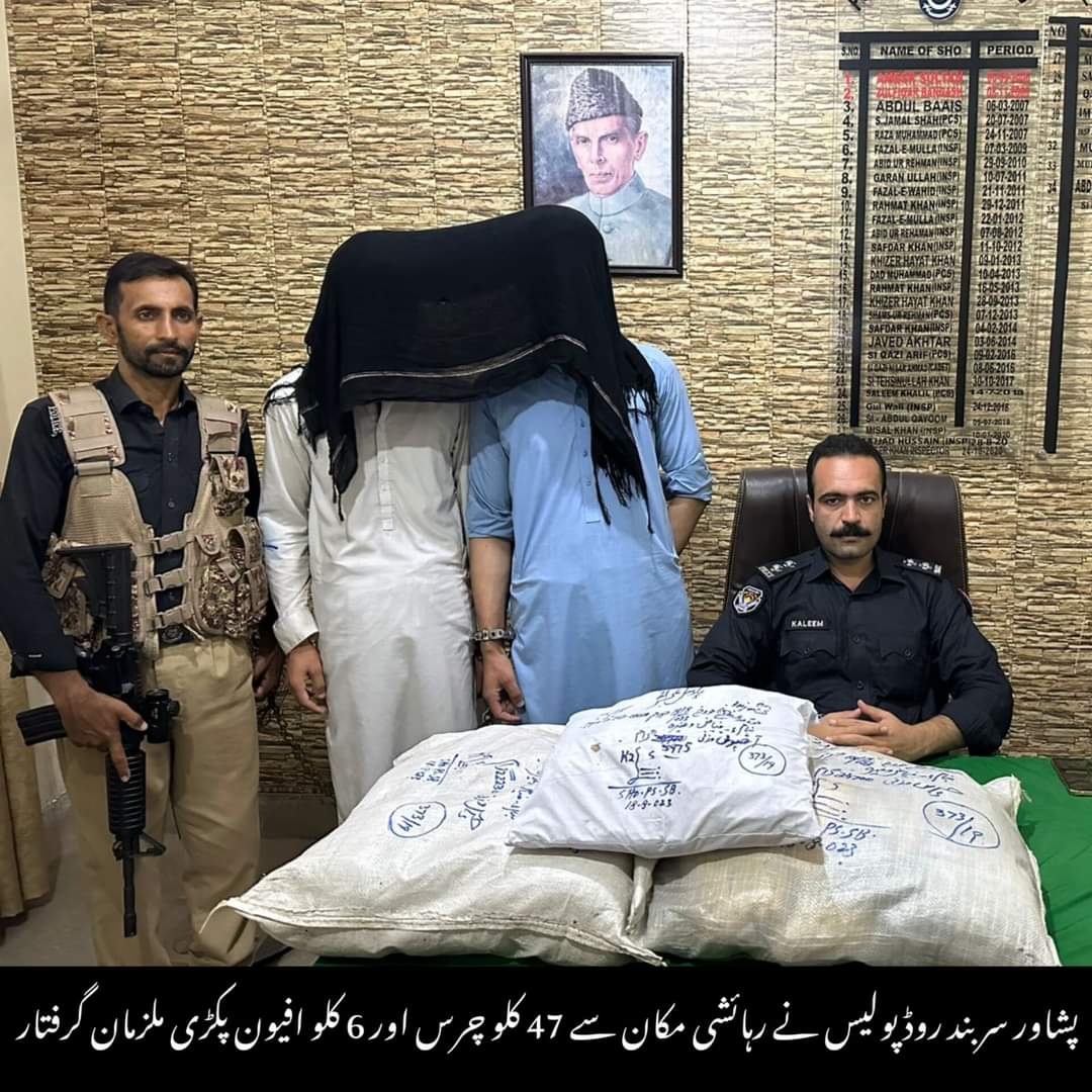 ایس پی کینٹ وقاص رفیق کو ملنے والی خفیہ اطلاع پر ڈی ایس پی پشتخرہ شیر افضل خان کی نگرانی میں ایس ایچ او تھانہ سربند کلیم اللہ خان نے لیڈیز پولیس کے ہمراہ اہم کاروائی کے دوران رہائشی مکان سے بھاری مقدار میں منشیات برآمد کرکے ملوث بین الصوبائی منشیات سمگلر نیٹ ورک سے تعلق رکھنے والے دو ملزمان کو گرفتار کر لیا ، گرفتار ملزمان کا تعلق ضلع خیبر سے ہیں، اہم کاروائی کے دوران رہائشی مکان سے 47 کلو گرام چرس اور 6 کلو گرام افیون برآمد کر لی گئی ہے، ملزمان پشاور اور ملک کے دوسرے شہروں سمیت پنجاب کو بھی منشیات سمگل کرنے میں ملوث ہیں ، جنہوں نے ابتدائی تفتیش کے دوران نیٹ ورک میں شامل دیگر ملزمان کے بھی نام اگل دیئے ہیں جن کی گرفتاری کیلئے ضلع خیبر اور پنجاب پولیس کیساتھ رابطے کرکے خصوصی ٹیمیں تشکیل دی گئیں ہیں، گرفتار ملزمان کے خلاف مقدمہ درج کرکے تفتیش شروع کردی گئی ہے