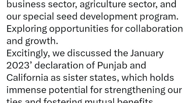 پنجاب اور کیلیفورنیا کو سسٹر اسٹیٹس قرار دینے کے معاہدے کے تحت تجارتی ومعاشی تعلقات کو فروغ دینا چاہتے ہیں۔محسن نقوی
