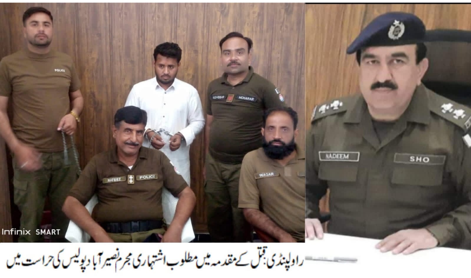 راولپنڈی(سہ پہر) ایس ایچ او تھانہ نصیر آباد ندیم ظفر کی ہمراہ پولیس ٹیم اہم کاروائی،قتل کے مقدمہ میں مطلوب اشتہاری مجرم گرفتار۔
