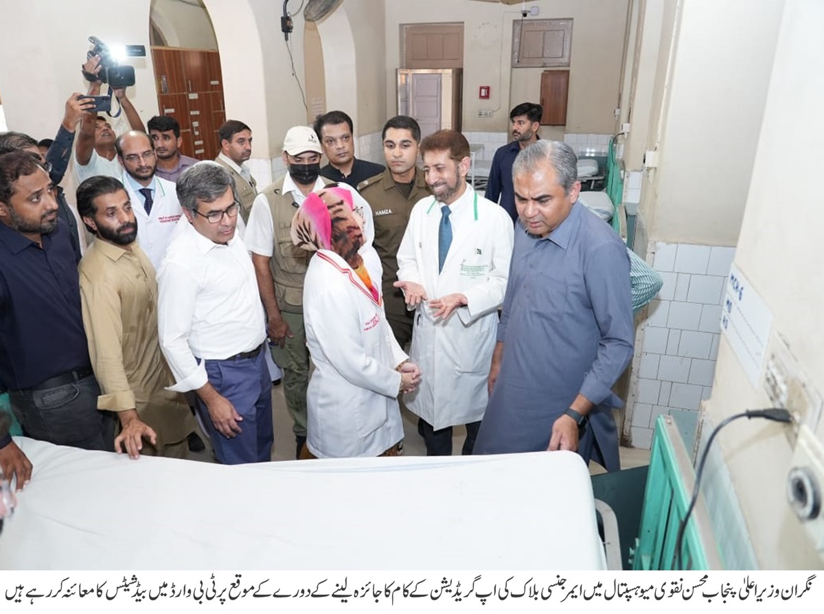 میو ہسپتال کے ایمرجنسی بلاک کی اپ گریڈیشن کو جتنی ممکن ہوسکا مکمل کرینگے، اپ گریڈیشن کا خود جائزہ لوں گا:محسن نقوی