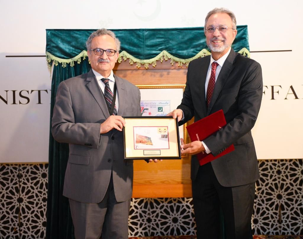Islamabad(Sapeher Times) : FS @syrusqazi and the Amb of 🇹🇷 to 🇵🇰 Dr.Mehmet Paçaci, jointly unveiled the Postage Stamp commemorating 75 Years of establishment of 🇵🇰-🇹🇷 diplomatic ties, at @ForeignOfficePk today.