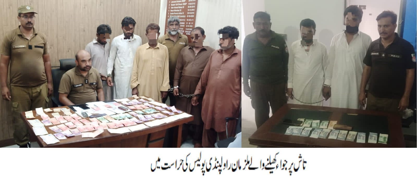 راولپنڈی(سہ پہر)پوٹھوہارڈویژن پولیس کی کاروائی،تاش پر جواء کھیلنے والے 07قمار باز گرفتار