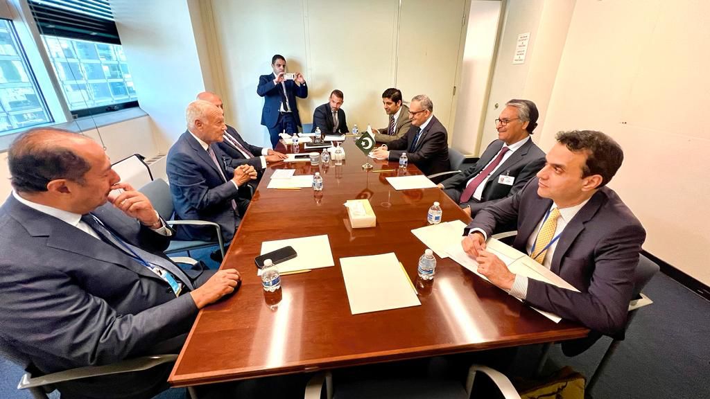 انگلش نیوز تازہ ترین NewYork(Sapeher Times) : Foreign Minister Jalil Abbas Jilani meets Secretary General Arab League Ahmed Aboul Gheit, on the sidelines of the 78th Session of UNGA in New York. admin 2023-09-21 Foreign Minister Jalil Abbas Jilani meets Secretary General Arab League Ahmed Aboul Gheit, on the sidelines of the 78th Session of UNGA in New York.