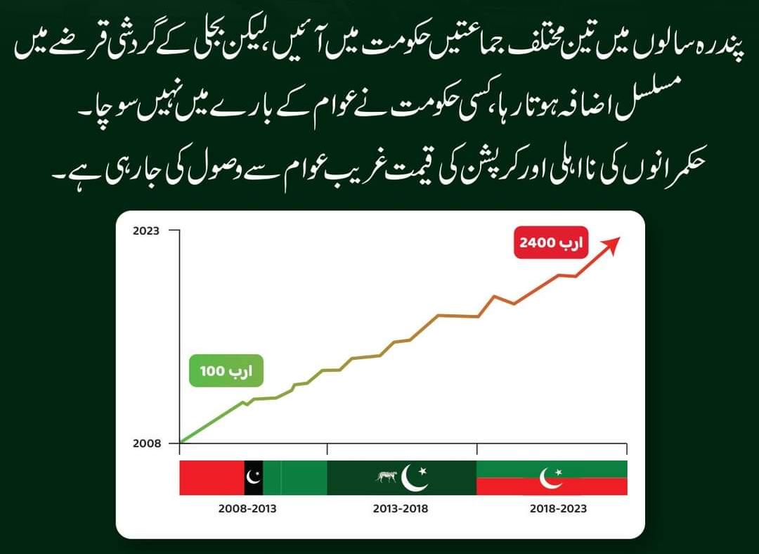 پندرہ سالوں میں تین مختلف جماعتیں حکومت میں آئیں، لیکن بجلی کے گردشی قرضے میں مسلسل اضافہ ہوتارہا،کسی حکومت نے عوام کے بارے میں نہیں سوچا۔