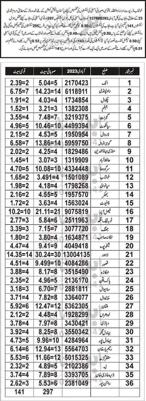 پاکستان تازہ ترین لاہور (سہ پہر) پنجاب کےتمام اضلاع کی نشستوں کےاعدادو شمارجاری کردئیےگئےالیکشن کمیشن کےنئی مردم شماری کےقواعدوضوابط کےتحت admin 2023-09-27 لاہور پنجاب کےتمام اضلاع کی نشستوں کےاعدادو شمارجاری کردئیےگئےالیکشن کمیشن کےنئی مردم شماری کےقواعدوضوابط کےتحت.