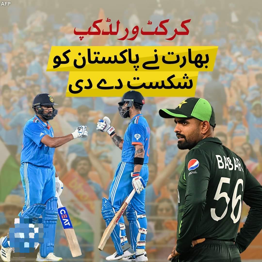 پاکستان تازہ ترین سپورٹس اسلام آباد(سہ پہر) کرکٹ ورلڈکپ کے بارہویں میچ میں بھارت نے پاکستان کو چھ وکٹوں سے شکست دے دی admin 2023-10-14 ۔ پاکستان کی جانب سے 192 رنز کا ہدف بھارت نے 31ویں اوور میں حاصل کیا۔ بھارتی کپتان روہت شرما نے 63 گیندوں پر 86 رنز کی نمایاں اننگز کھیلی۔