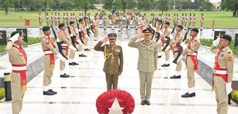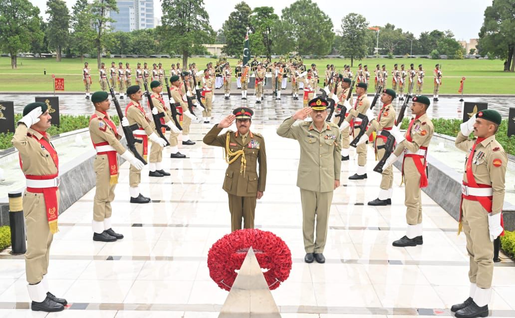 Earlier on arrival at GHQ, Commander Royal Army of Oman laid floral wreath at Yadgar-e-Shuhada. A smartly turned out contingent of Pakistan Army presented the guard of honour to the visiting dignitary.