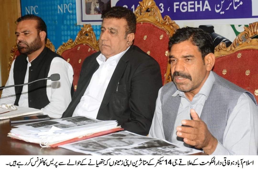 اسلام آباد کے علاقے جی 14 متاثرین کے راہنماء سید ساجد شاہ گیلانی نے کہا ہے کہ مقامی لوگوں کو غیر قانونی طور پر بے گھر کیا جا رہا ہے فیڈرل گورنمنٹ ایمپلائیز ہاؤسنگ اتھارٹی کےکرپٹ افسران اپنے رشتہ داروں اور عزیزوں کو جلد نمبرنگ کر کے ایوارڈ دے رہے ہیں، 2005 کا ایوارڈ غیرآئینی ہے مقامی لوگوں کے حقوق کو سلب کیا جا رہا ہے، گوگل نقشے کو بنیاد بنا کر سات بندوں کو ایک پلاٹ دیا جا رہا ہے، یہ عدالتوں میں جا کے کہتے ہیں کہ متعلقہ جگہ ایکوائر نہیں ہے جبکہ دوسری طرف اسےغیر قانونی قرار دے کر مکانات گرائے جا رہے ہیں اس سے بڑا فراڈ اور کیا ہو سکتا ہے، ایسی فراڈ اتھارٹی کو ختم کیا جانا چاہیے، نیشنل پریس کلب اسلام آباد میںجی 14 کے دیگر متاثرین سید واجد علی گیلانیایڈووکیٹ، سید رفاقت حسین شاہ بلال شاہ و دیگر کے ہمراہپریس کانفرنس کرتے ہوئے سید ساجد شاہ گیلانی کا مزید کہنا تھا کہ فیڈرل گورنمنٹ ایمپلائز ہاؤسنگ اتھارٹی کے افسران ہماری زمینوں پر بزنس کر رہے ہیں، 2023ء میں 2005 ء کے ریٹ پر ادائیگیاں کی جا رہی ہیں جو کہ قبول نہیں ہیں،مقامی لوگوں کے گھروں کو گرا کر انہیں بے گھر کیا جا رہا ہے،جھوٹےمقدمات قائم کرکےانہیں گرفتار کیا جا رہا ہے،انہوں نے مزید کہا کہ اگر ایوارڈ 2023 میں دے رہے ہیں تو پھر معاوضہ 2005 کے حساب سے کیسے دیا جا سکتا ہے ہمارے ساتھ فیڈرل گورنمنٹ ایمپلائیز ہاؤسنگ اتھارٹی کا ظلم بند کیا جائے، ڈیپوٹیشن اور دیہاڑی لگانے والے افسران کرپشن کے بے تاج بادشاہ ہیں،ہر آباد گھر کو اسی سیکٹر میں پلاٹ دیا جائے،ہاؤسنگ فاؤنڈیشن کا کالا قانون نا منظور ہے، غیر قانونی متنازعہ گوگل طریقہ کار ختم کیا جائے، جوائنٹ نمبر الگ کیے جائیں،سپیکر قومی اسمبلی کے رولنگ پر عمل درآمد کیا جائے اور موجودہ مارکیٹ ریٹ پر معاوضہ دیا جائے، انہوں نے وزیر اعظم،چیف جسٹس اور آرمی چیف سے مطالبہ کیا کہ وہ انکے جائز مطالبات پورے کرتے ہوئے انہیں انصاف مہیا کریں ۔