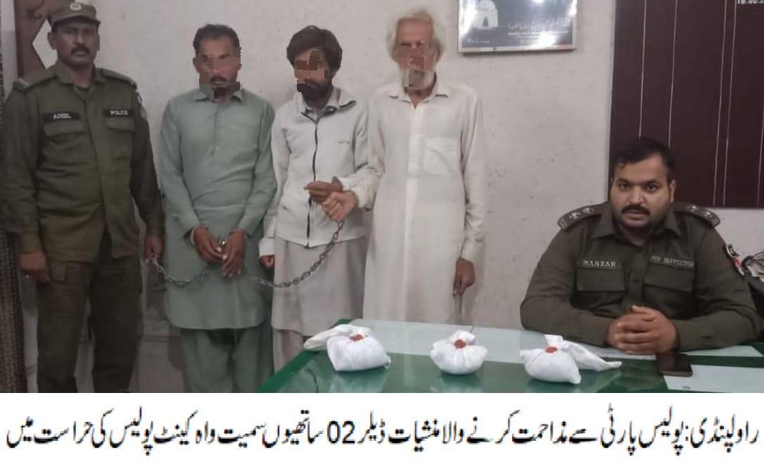 راولپنڈی(سہ پہر) واہ کینٹ میں منشیات ڈیلر کی گرفتاری کے لیے جانے والی پولیس پارٹی سے منشیات ڈیلر اور ساتھیوں کی مزاحمت،پولیس کی مناسب حکمت عملی سے منشیات ڈیلراور 02 سپلائر گرفتار