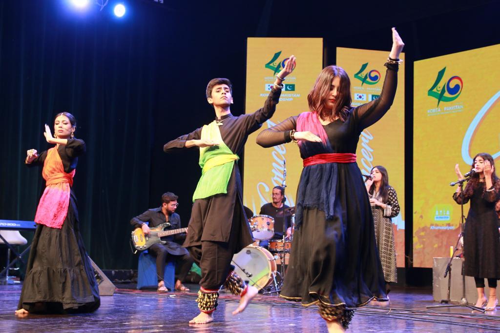 The artists that performed in the concert were two Korean groups that came to Pakistan all the way from Korea called ‘LAON’ and ‘MOCCOJI’ both groups well-versed in playing and singing Korean folk music and giving Korean folk music a modern touch. Khumaariyan, the very famous Pakistani band of musicians and the students from the National College of Arts, Lahore also performed at the concert.