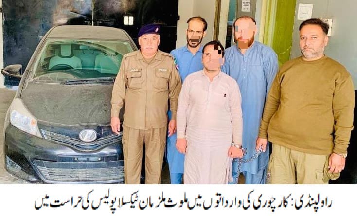 راولپنڈی (سہ پہر) ایس ایچ او ٹیکسلا رفیق خان کی ہمراہ پولیس ٹیم اہم کاروائی، 03رکنی کار چور گینگ سے مسروقہ کار برآمد