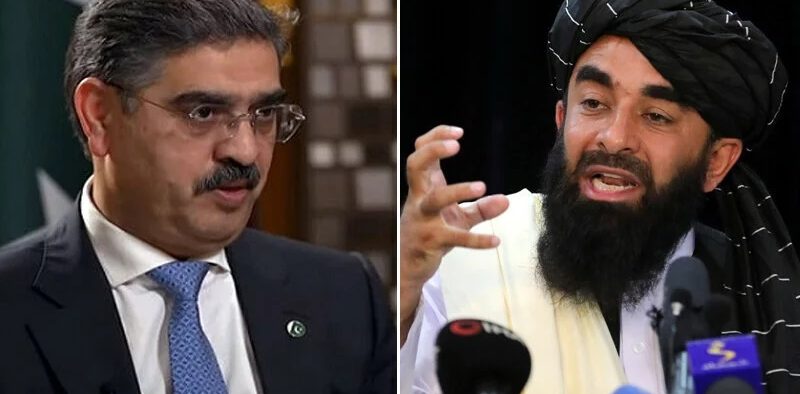 عبوری افغان حکومت سے تعلقات پرنگراں وزیراعظم نے کہا کہ پاکستان سے وزیر دفاع کی سربراہی میں اعلی سطح پر وفد افغان حکومت سے ملاقات کے لئے گیا جس میں آئی ایس آئی کے سربراہ بھی موجود تھے جب کہ اس سے قبل بھی رسمی اور غیر رسمی طریقے سے مختلف وفود بھی افغانستان جا چکے ہیں، اگر اس کے باوجود وہاں سے مثبت اشارے یا اقدامات نہ آئیں تو پاکستان بھی اپنے رویے پر نظر ثانی کرے گا۔نگراں وزیراعظم کے ان خیالات پر ردعمل کا اظہار کرتے ہوئے ترجمان طالبان نے لکھا کہ امارت اسلامیہ افغانستان پاکستان میں قیام امن کی ذمہ دار نہیں ہے، انہیں (پاکستان کو) چاہیے کہ وہ اپنے ملکی مسائل خود حل کریں اور اپنی ناکامیوں کی ذمہ داری افغانستان پر نہ ڈالیں۔