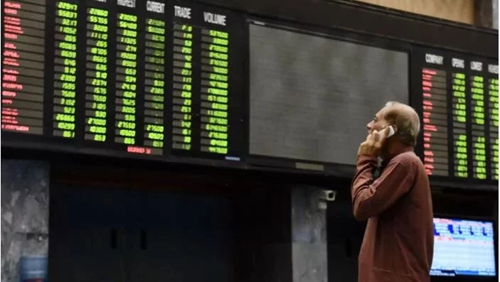 پاکستان اسٹاک ایکسچینج میں آج بھی زبردست تیزی رہی، کاروبار کے دوران 100 انڈیکس پہلی بار 56 ہزار کی سطح عبور کرگیا۔ کاروباری ہفتے کے آغاز سے ہی پاکستان اسٹاک ایکسچینج میں کاروبار کا مثبت رجحان دیکھا گیا اور ایک موقع پر 100 انڈیکس 1192 پوائنٹس اضافے سے 56 ہزار 583 کی سطح پر پہنچ گیا۔ کاروبار کے اختتام پر 100 انڈیکس 11 ہزار 32 پوائنٹس کے اضافے سے 56 ہزار 523 پر بند ہوا۔ یاد رہے کہ گزشتہ کاروباری ہفتے کے آخری روز بھی پاکستان اسٹاک ایکسچینج 1129 پوائنٹس اضافے سے 55 ہزار 391 پر بند ہوا تھا۔