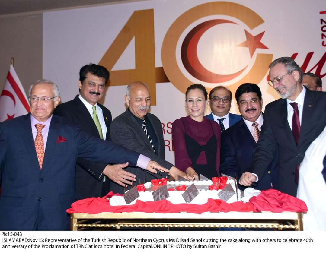 Hosted by TRNC Islamabad Representative, H.E. Dilsad Senol, and Ambassador of Turkiye to Pakistan, Dr. Mehmet Pacaci, the event showcased the TRNC’s achievements over four decades. A ceremonial cake-cutting ceremony, graced by Senator Mushahid Hussain Sayed, Senator Shahzad Waseem, Maulana Tahir Ashrafi, DG Ministry of Foreign Affairs Imran Haider, and TRNC Representative Dilsad Senol, symbolized the enduring partnership between the TRNC and Pakistan.