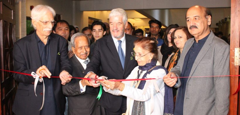 The event commenced with a Tree-Plantation ceremony at the lush green lawn of PNCA premises, where Ambassadors of Turkmenistan, Portugal, and Vietnam, along with DG PNCA, Chairman CPCD, and well-known veteran Artist Hajera Mansoor w/o famous Painter Mansoor Rahi, and Rasheed Butt Caligrapher planted saplings to contribute to a greener environment.