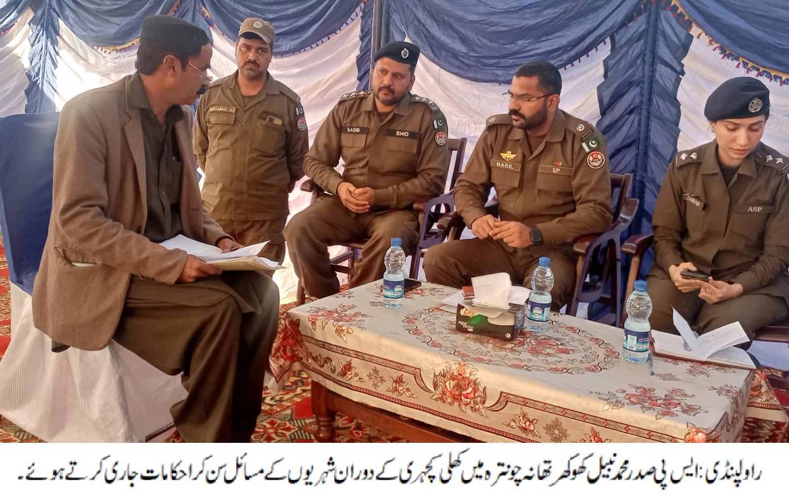 راولپنڈی(سہ پہر) ایس پی صدر محمد نبیل کھوکھر کی تھانہ چونترہ کے علاقہ میں کھلی کچہری