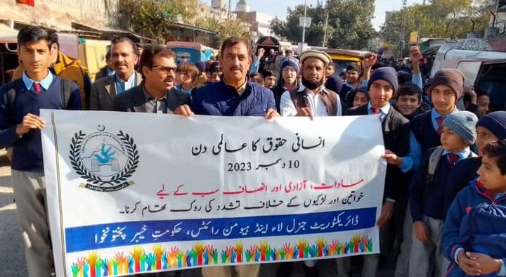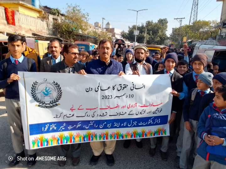 Haripur On the special instructions of Deputy Commissioner Haripur, Human Rights Day was celebrated in Government High School No. 3 Haripur under the supervision of Assistant Commissioner Haripur. During this, an awareness campaign was organized and the students were informed about human rights. Later, an awareness walk was also conducted in which teachers, civil society and students participated.