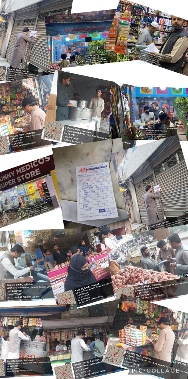 Karachi On the directives of Deputy Commissioner of South Karachi, Captain (R) Altaf Hussain Sario, the DC South Office issued a comprehensive report of a week from 1st to 7th December 2023 regarding daily price checking and actions taken against violators. The report, released by a DC office comprising Assistant Commissioners, Magistrates, and price checking Officers, reveals that 172 cases were reported in last week and resulting the fines total amount of 1141500 were imposed against profiteers and hoarders. According to the report issued by DC South Office Karachi, 33 cases were reported in South Karachi’s division Civil Lines and fines amounting 400000 were imposed. In Saddar, 19 cases were reported with fines of amount 168000, while 21 cases were reported from Garden resulted the fines 145000, furthermore, 50 cases were reported in shops of Aram Bagh, in resulting the fines Rs 232000 while in Lyari 49 cases were reported with fines the amount 196500. Deputy Commissioner South Karachi Captain (retd) Altaf Hussain Sario given clear instructions the Souht ACs and administrators of all divisions to ensure the essential commodities for people at official fixed rates and to continue the actions against profiteers and hoarders. Officers of DC office said that operations are carried out on a daily basis to ensure the providing essential commodities to people at the rates set by the government