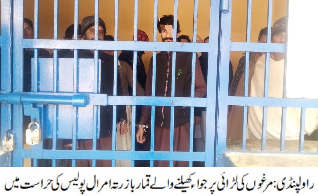 راولپنڈی(سہ پہر) ایس ایچ او رتہ امرال چوہدری ریاض کی ہمراہ پولیس ٹیم کاروائی،مرغوں کی لڑائی پر جواء کھیلنے والے 15ملزمان گرفتار