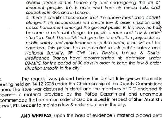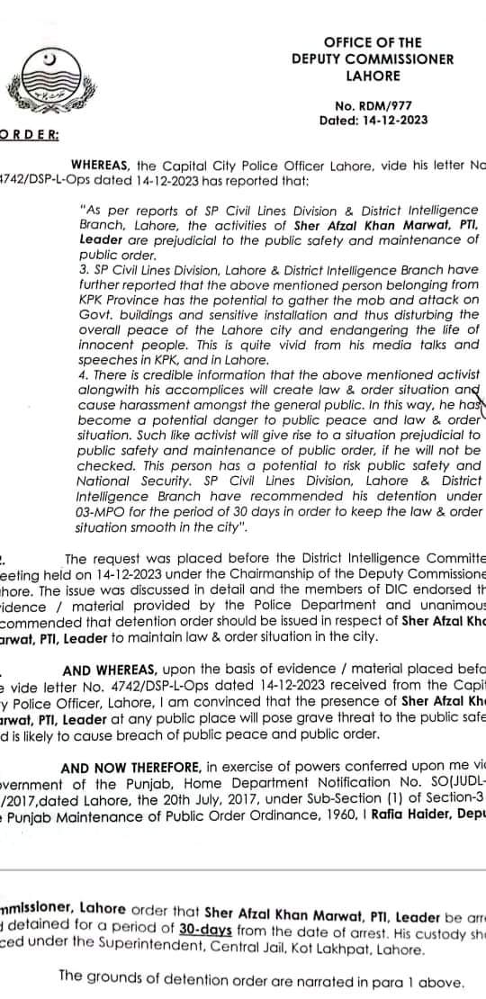 پاکستان تازہ ترین لاہور(سہ پہر) شیر افضل مروت نظر بند، نوٹیفکیشن جاری admin 2023-12-15 لاہور شیر افضل مروت نظر بند، نوٹیفکیشن جاری شیر افضل مروت کو 3 ایم پی او کے تحت گرفتار کرکے کوٹ لکھپت جیل منتقل کردیا گیا نوٹیفیکیشن جاری کردیا گیا