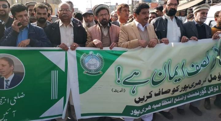 ہری پور : وزیر اعلیٰ خیبر پختونخواہ کے خوشحال خیبرپختونخواہ پروگرام کے تحت ڈپٹی کمشنر ہری پور کی خصوصی ہدایت پر ایڈیشنل اسسٹنٹ کمشنر (دوم) ہری پور نے گزشتہ روز صفائی ستھرائی پروگرام کے سلسلے میں آگاہی واک کا انعقاد کیا گیا جس میں ڈی ایس پی سٹی ہری پور، ڈسٹرکٹ ایجوکیشن آفیسر (میل)، ڈسٹرکٹ آفیسر سوشل ویلفیئر ڈیپارٹنمنٹ، اسسٹنٹ ڈائریکٹر لوکل گورنمنٹ, تحصیل خطیب ہری پور، ٹی ایم اے ہری پور افسران، چیف آفیسر سی او یونٹ کھلابٹ ٹاؤن شپ، ریونیو افسران، پرنسپل ہائی سکول نمبر 1، ہیڈ ماسٹر ہائی سکول نمبر 3 کے ساتھ ساتھ لائن ڈپارٹمنٹس کے افسران نے شرکت کی۔ اس موقع پر اساتذہ، سٹوڈنٹس، سول سوسائٹی، میڈیا کی بھی بڑی تعداد موجود تھی۔ ریلی ڈسٹرکٹ سیکرٹریٹ سے شروع ہو کر چوک صدیق اکبر پر ختم ہوئی ۔ ریلی کے اختتام پر شرکاء نے اپنے خیالات کا اظہار کیا