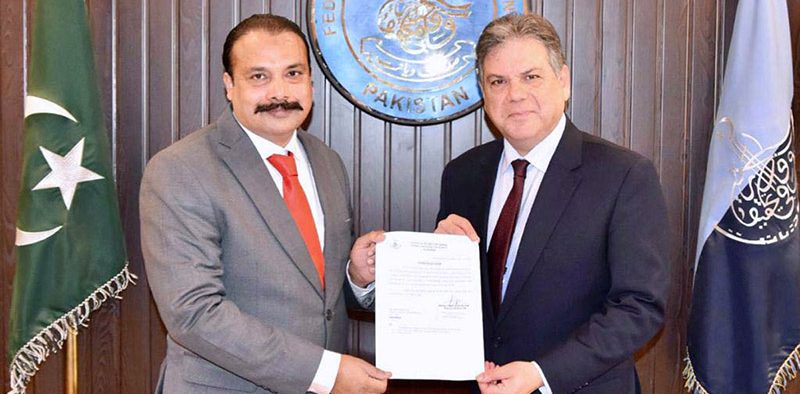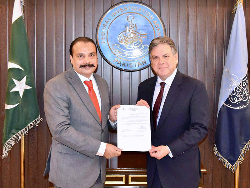 ISLAMABAD: December 28 – Director General FIA Mohsin Hassan Butt presenting Appreciation Letter to Deputy Director FIA Majid Manzoor Awan on best performance during year 2023.