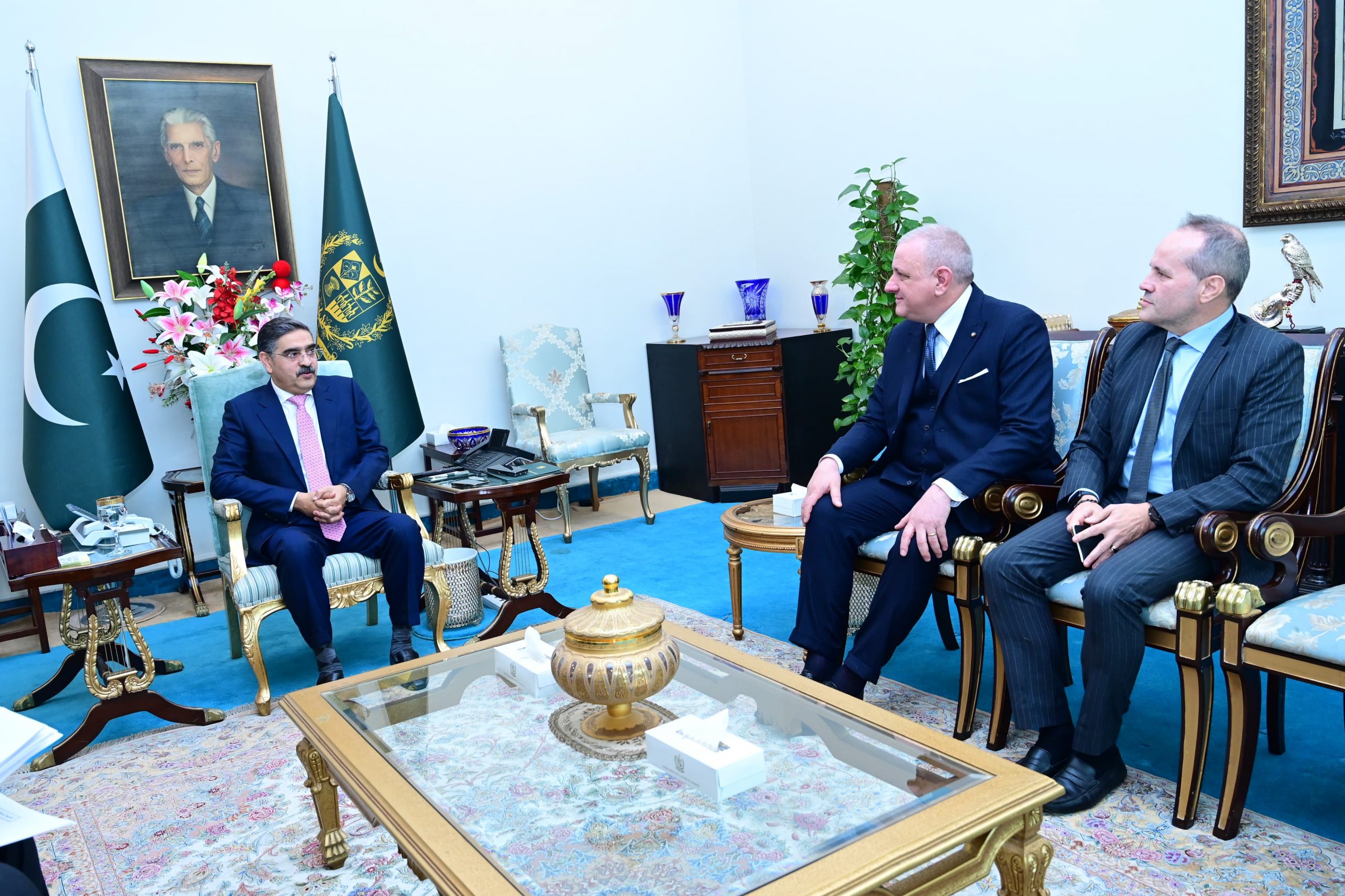 Islamabad – 12 January 2024 (Adnan Hameed) : The Ambassador of Italy to Pakistan, H.E. Andreas Ferrarese, paid a farewell call on Caretaker Prime Minister Anwaar-ul-Haq Kakar in Islamabad.