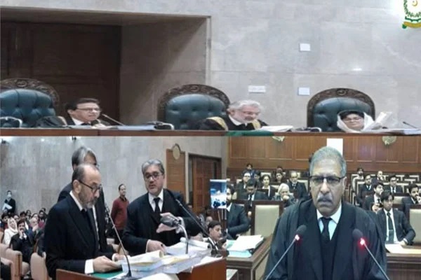 وکیل حامد خان نے کہا تھا کہ پی ٹی آئی بطور جماعت فریق ہی نہیں تھی تو چیلنج کیسے کرتی؟ چیف جسٹس نے دوبارہ پوچھا تھا کہ ایک ہائیکورٹ کے سنگل بنچ کا فیصلہ ہو دوسری ہائیکورٹ کے ڈویژن بنچ کا تو فوقیت کسے ملے گی؟ وکیل مخدوم علی خان نے کہا کہ ڈویژن بینچ کے فیصلے کو فوقیت دی جائے گی۔