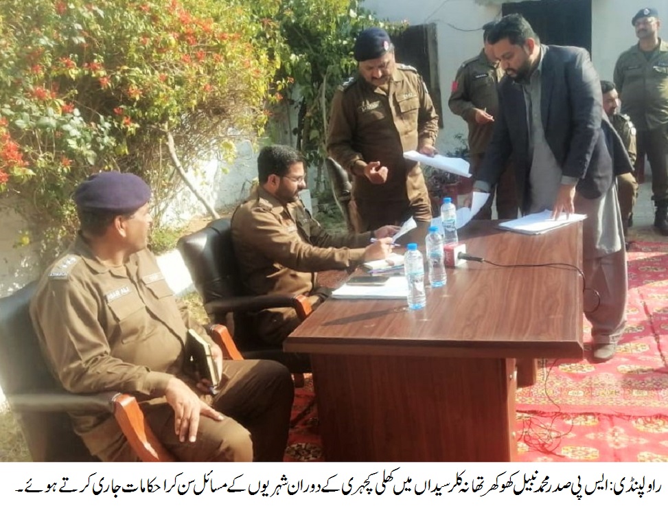 راولپنڈی(سہ پہر) ایس پی صدر محمد نبیل کھوکھر کی تھانہ کلر سیداں میں کھلی کچہری